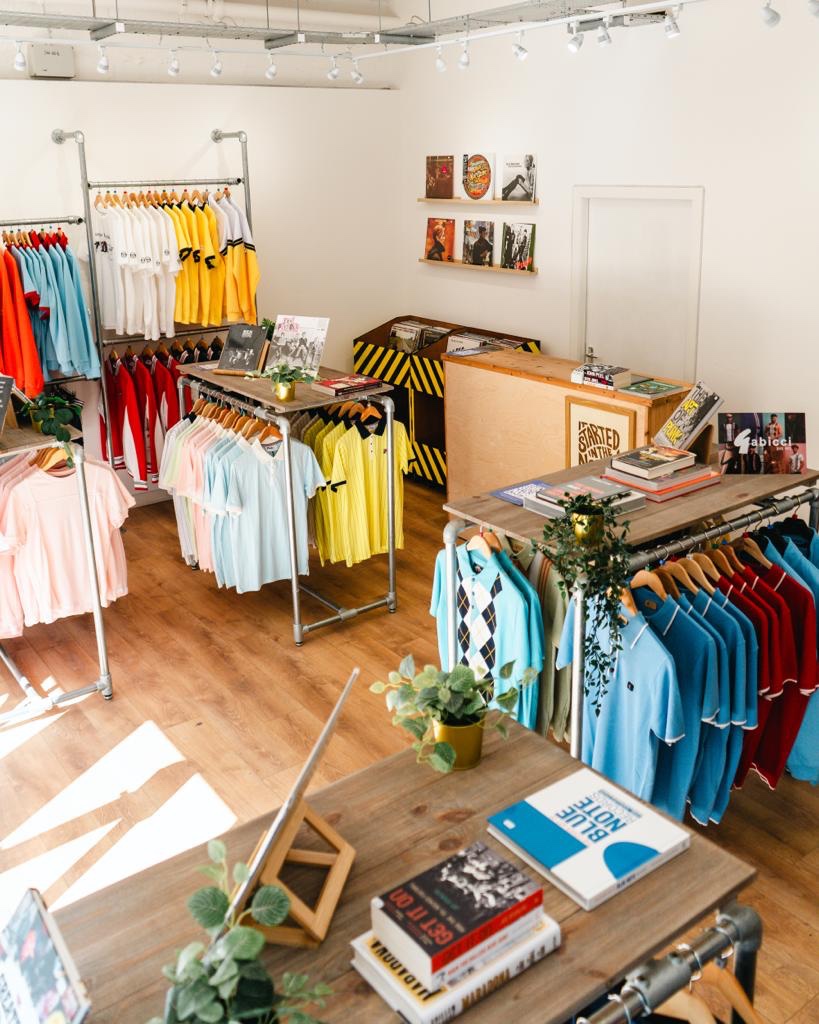 Starting here at your shop, very impressive with cool images. I like the mix of threads and vinyl like a perfect gold mine and a place to hang out in. Would you say you have a combination of a mod look and a terrace vibe?