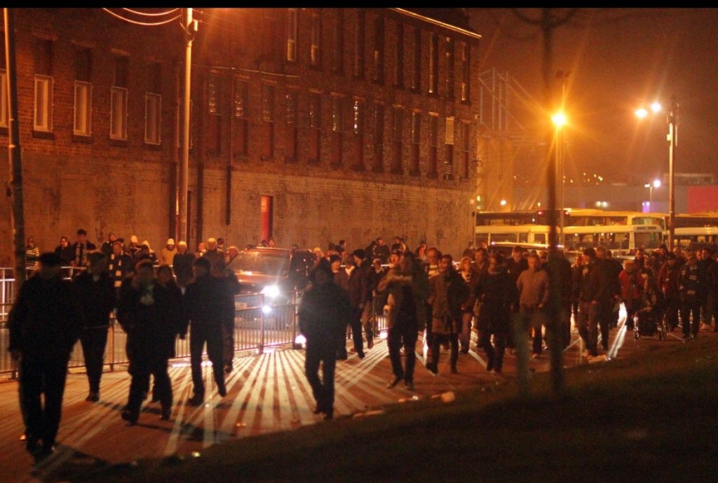 Celtic won the match; it was now game on with the ASC, we left the ground together and tried to turn left passed the old Celtic shop but we noticed a barrier was up to stop this so we headed straight down and gathered at the bus stop opposite the London Road Primary school.  There was was a lot Celtic fans leaving the ground moving both ways on London Road, about five minutes later we notice the mounted police moving from the away end towards us, that was when we knew they had the away fans and the ASC with them as they tried to keep them at the other side of the road.