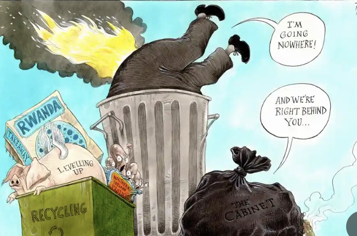Boris Johnson was always a creation, a kind of anti-politician cartoon character that appealed to the type of people who complain that ‘all politicians are the same.’ These ‘new populists’ – the Johnsons, Trumps, Macrons, Bolsonaros, Orbans – are always rich and right wing opportunists using the familiar tricks of the demagogue to whip up hatred against others in order to divert attention away from their own criminality. Migrants, gay people, indigenous people, women, strikers, single mums, benefit claimants, poor people, ill people, football fans. They don’t care who they target as long as their pet mass media propagandise on their behalf.